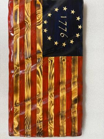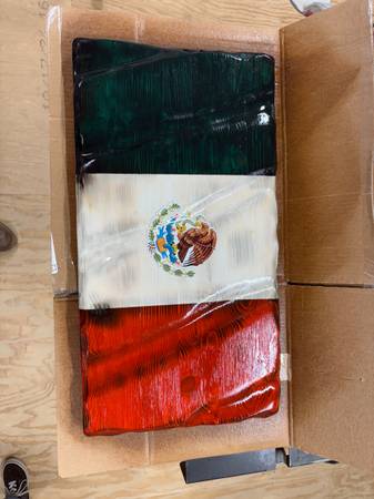 They are stained, burnt and have hand engraved stars. I also make Mexican flags, stained, burnt with coat of arms decal. I do put an indoor outdoor seal on them.