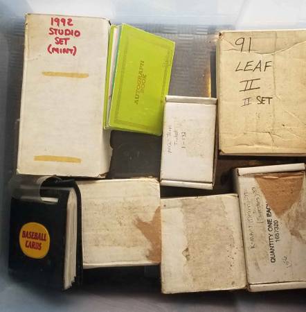 Thousands of cards priced anywhere from $.25 - $1.00+. Baseball, Football, and some Basketball. Pinnacle, Leaf, Topps, Studio, Upper Deck, Donruss, Fleer. Mostly from early 90s. Make a reasonable offer.