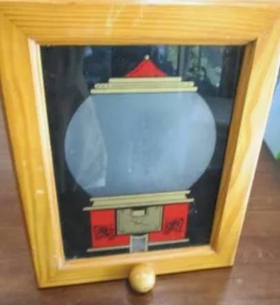 Vintage wood frame glass gumball machine. 12"x15"x1 3/4" not including turning knob. Pick up.