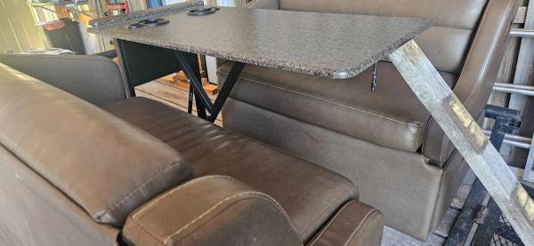 Dinette booth out of our Fleetwood rv // found something way nicer to occupy its real estate // takes about 73" of wall space wherever you decide to install it // condition is good and like most rv parts install is pretty simple. Also makes into a bed for small people // storage drawers underneath each bench.