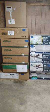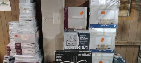 Ceiling fans, vanity lights, ceiling lights, chandeliers, exterior lights, puck lights and soaking bath tubs