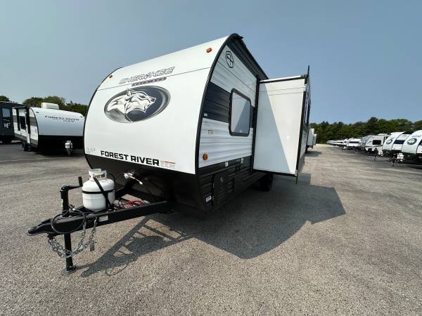 Each one of these Forest River Cherokee Wolf Pup travel trailers are lightweight and easy to tow! They are fully self contained with ample tank capacities, an abundance of storage space, and filled with at home amenities. The aerodynamic smooth radius front profile, the Power Gear frame technology, and the space saver rail design make them easier to maneuver. You will also appreciate the seamless roofing membrane with heat reflectivity to keep the sun from making your unit a hot box. The tongue and groove plywood flooring will hold up for years of fun and the USB charging stations help to keep your electronics at 100% while you're away. Come find the best model for you today!