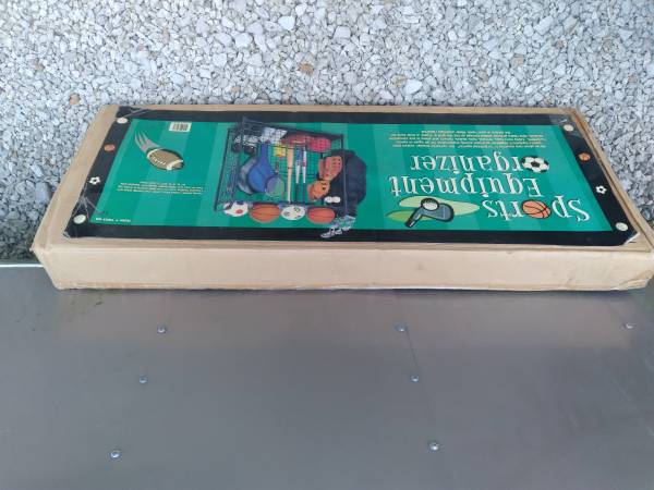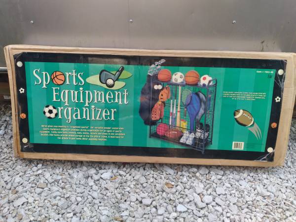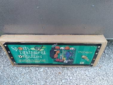 Sports Equipment Organizer Garage Storage Rack powder coated steel. New in box. 40" w x 15 d" x 43.5 height. See box for more details. Please call 10 am to 10 pm 765 38six two zero two zero. $65.00...