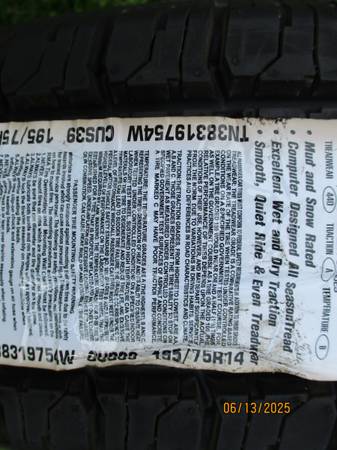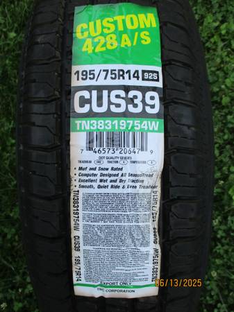 Four brand new 195 75 R14 tires. Black or thin whitewall. All season. I bought them for a car I sold before installing them. Asking what I paid. Willing to deliver within 30 minutes of TH. Must buy...